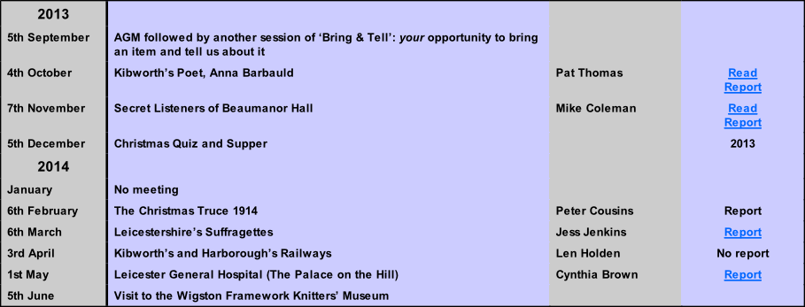 Our speaker this month was Pat Thomas. Pat, who is a member of the Society, spoke about the life and works of Kibworth's gifted poet, Anna Laetitia Barbauld. Anna Laetitia Aikin was born in 1743 at the Old House in Kibworth Harcourt and lived her early life in the village. Both sides of Anna's family came from dissenting families and it was this that brought both to Leicestershire. Her father was head of the dissenting academy in the village while her maternal grandfather, the Reverend John Jennings, had been a dissenting minister at St Wilfrid's Church.