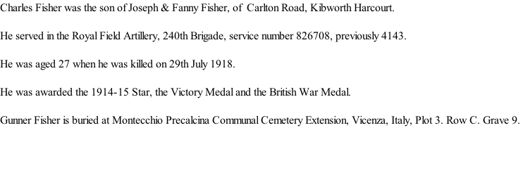 © 2005-2018, 2019  All Rights Reserved Kibworth History Society and W.G.Weston Gunner Charles Fisher