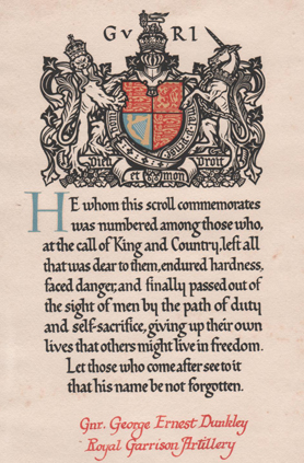Florrie Dunkley was granted a widow’s pension pension of 18s 9d (93p) a week from 17th December 1917, and she received George’s British War and Victory Medals on 6th October 1921.