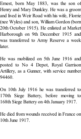 Private Dunkley is buried at Lijssenthoek Military Cemetery, Poperinge, West-