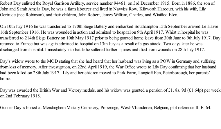 © 2005-2018, 2019  All Rights Reserved Kibworth History Society and W.G.Weston Gunner Robert Day